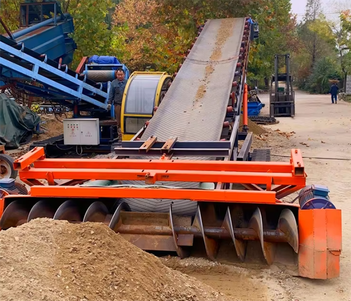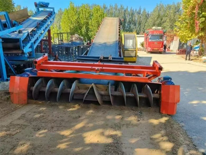 皮帶輸送機:如果將100噸物料在1小時內完成裝車,輸送能力需達到100t/h左右。可選用帶寬800~1000mm的帶式輸送機,長度根據現場布置在20~40米之間,提升高度5~10米不等。可根據礦渣水泥廢料密度大、磨蝕性強等特點配備足夠功率的電機。帶式輸送機的末端安裝可擺動、升降的裝車溜管,實現卡車車廂內的均勻布料。